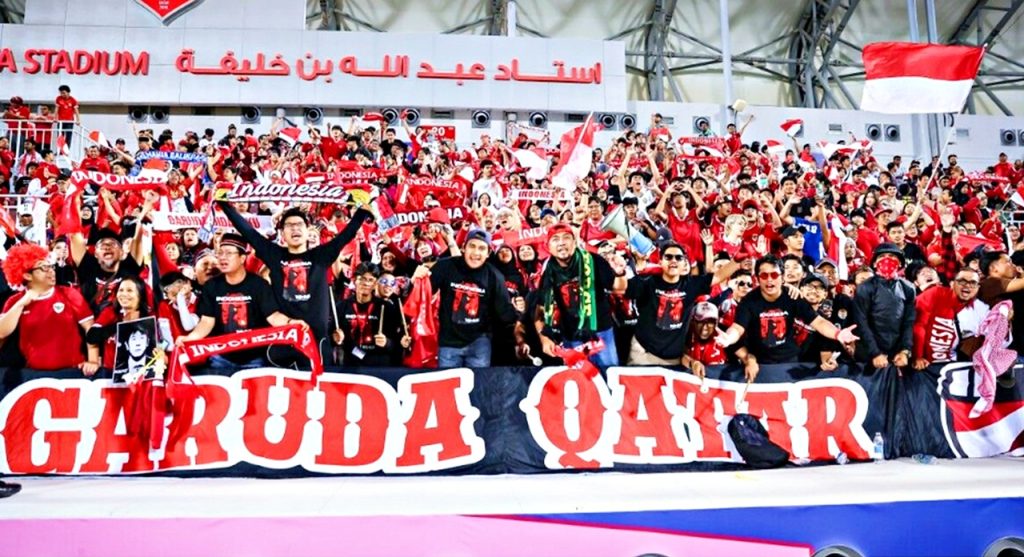 DUKUNGAN : Suporter Garuda Muda kembali akan men-support Muhammad Rizky Ridho dan kawan-kawan pada babak Semifinal AFC U-23 Asian Cup Qatar 2024, Senin (29/04/2024) menghadapi Uzbekistan U-23 malam ini, di Abdullah bin Khalifa Stadium, Doha, Qatar. (foto : dok. the-afc.com)