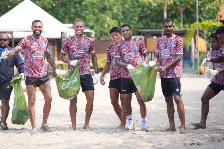 KUTA, SPORTS.ID – Para pemain dan official PSBS Biak secara spontan melakukan aksi bersih-bersih pantai Jerman, Kuta, Bali. Aksi ini dilakukan sebagai wujud kepedulian mereka terhadap kebersihan tempat mereka latihan fisik. Pantai Jerman, Kuta, Bali menjadi temoat yang ideal bagi Kelly Sroyer dan kolega untuk memantapkan fisik di masa jeda