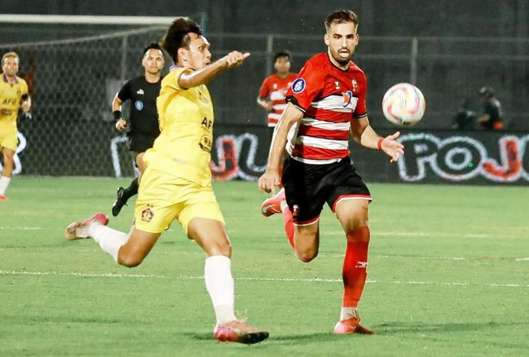 BANGKALAN, G-SPORTS.ID – Madura United membukukan kemenangan penting di kandang sendiri, Stadion Gelora Bangkalan, Madura, Senin (28/04/2025) malam. Tim asuhan pelatih asal Argentina, Angel Alfredo Vera tersebut, sukses mengamankan poin absolut. Dalam laga pekan ke-30 kompetisi BRI Liga 1 2024/2025, Madura Unoted sukses ungguli tamunya Persik Kediri 2-1. Laga yang