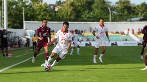 “PSM pasti bermain menekan. Kami menanggulangi situasi tersebut dengan menaruh bola di belakang garis pertahanan lawan,” ujar coach Hendri saat menjawab pertanyaan terkait cara mengatasi tekanan tim tuan rumah.