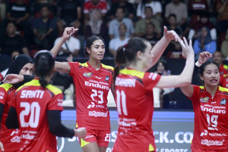 SOLO, G-SPORTS.ID — Jakarta Pertamina Enduro menjadi tim putri pertama yang memastikan maju ke grand final usai mengalahkan Gresik Petrokimia Pupuk Indonesia 3-2 (22-25, 20-25, 25-15, 25-22, 15-9) dalam lanjutan final four seri ketiga PLN Mobile Proliga 2025 di GOR Sritex Arena Solo, Jumat (2/5/2025). Kemenangan Pertamina ini merupakan kemenangan